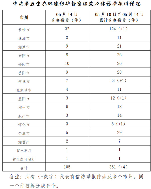 5月14日,中央第五生态环境保护督察组向我省交办信访件105件,其中重点件5件。截至目前,我省已累计收到中央生态环境保护督察组交办五批信访件,共361件,信访件数量逐日增多,全省民众投诉举报渠道畅通。