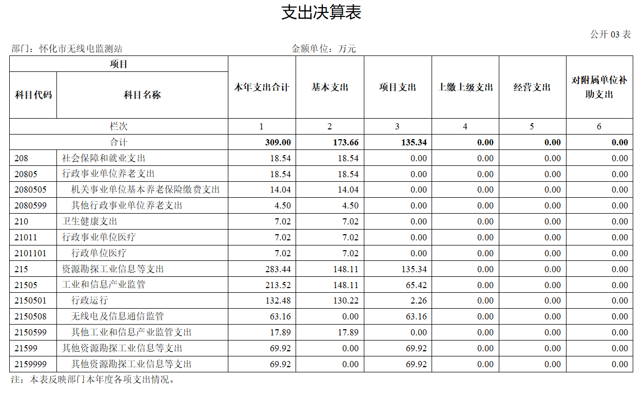 (二)决算单位构成。怀化市无线电监测站2022年部门决算公开单位构成包括:怀化市无线电监测站本级。