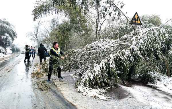1月16日,受雨雪天气影响,308省道麻阳吕家坪镇塘坊段道路两侧竹木被压弯,侵占道路,...