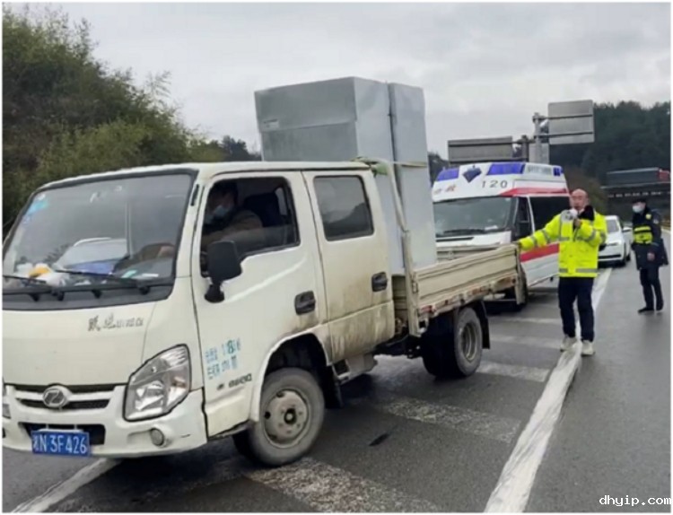 安江收费站副站长胡珏在收费广场引导车辆,帮助载有重症病人的救护车快速通过。