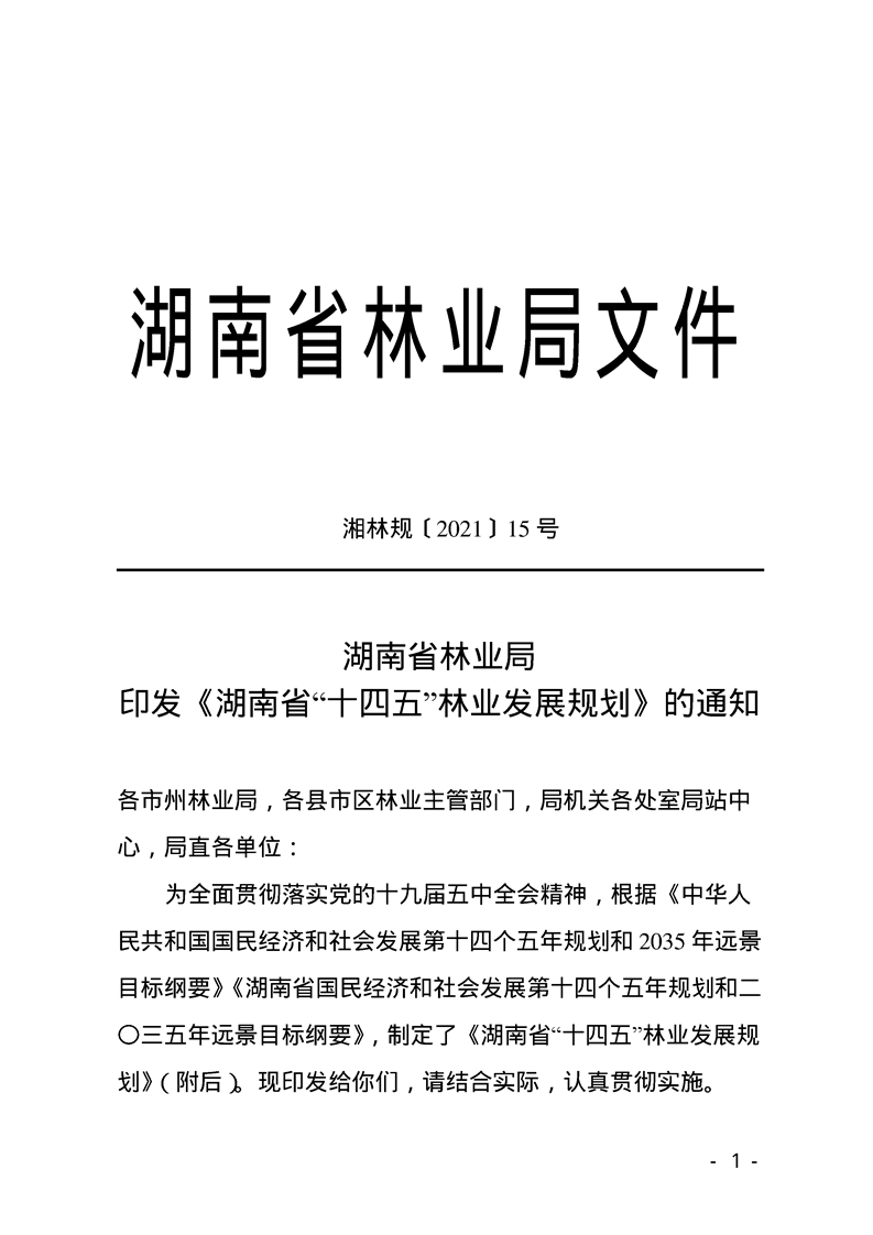 湖南省林业局 印发《湖南省“十四五”林业发展规划》的通知