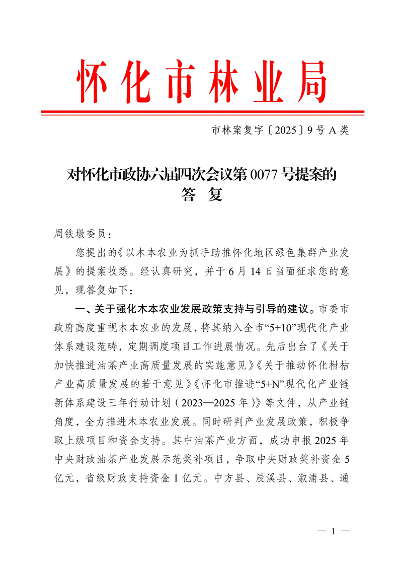 对怀化市政协六届四次会议第 0077 号提案的答复