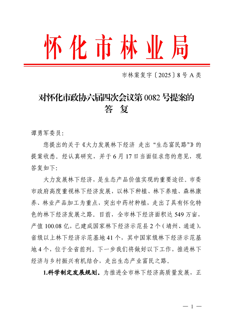 对怀化市政协六届四次会议第 0082 号提案的答复