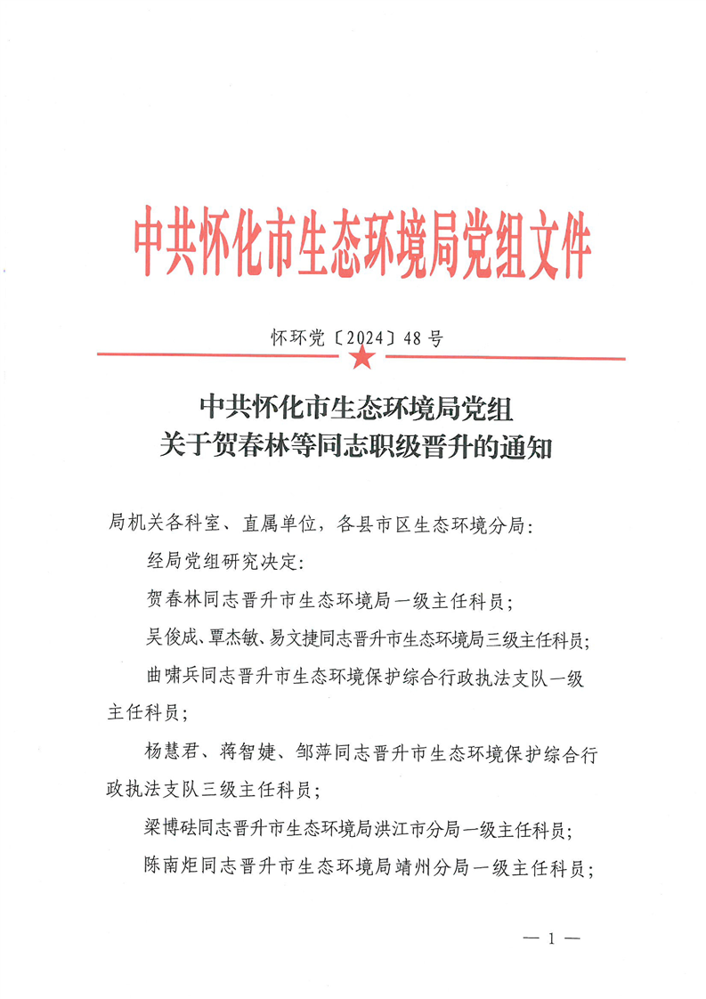 关于贺春林等同志职级晋升的通知