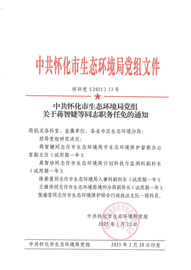 关于蒋智婕等同志职务任免的通知(怀环党〔2025〕13号)