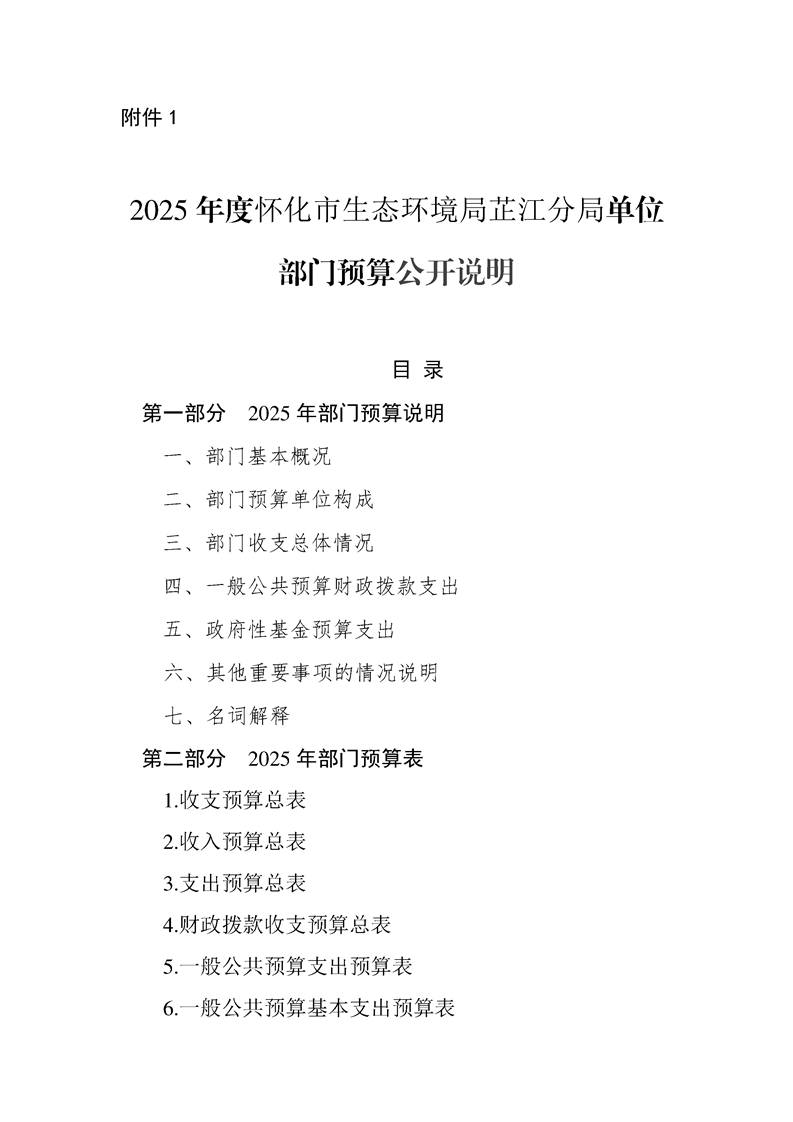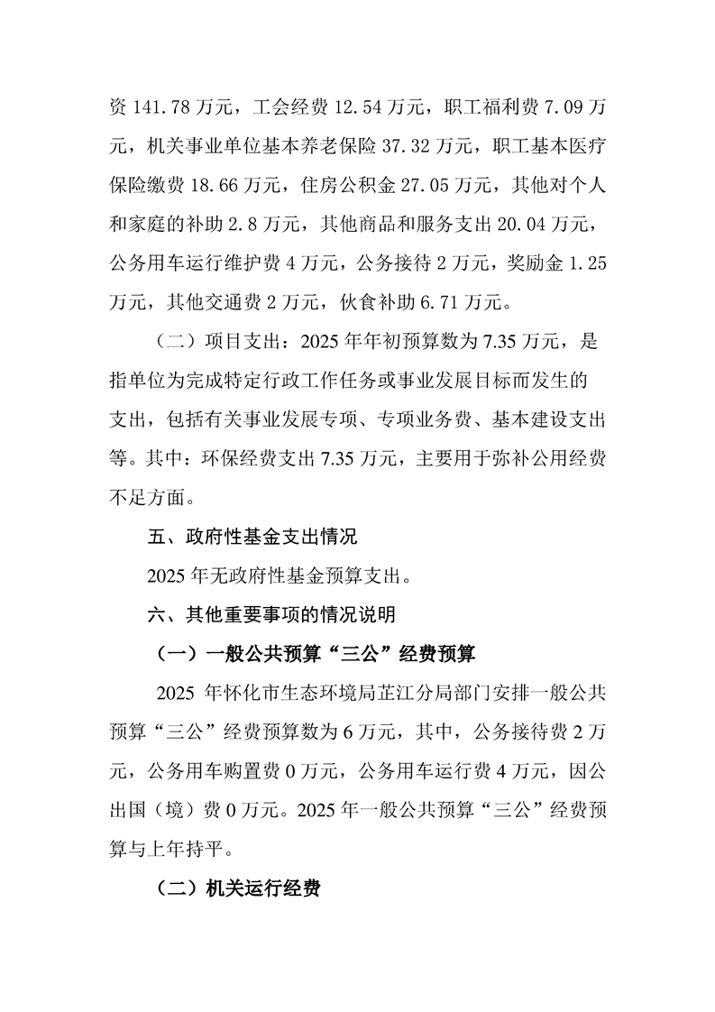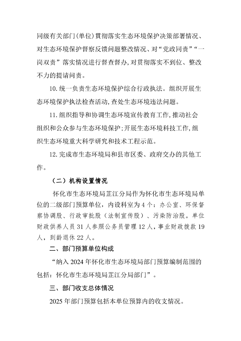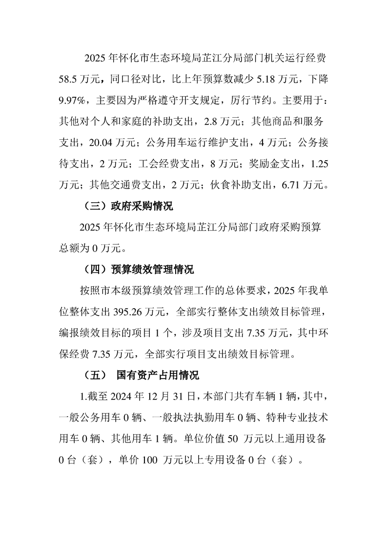 2025年度怀化市生态环境局芷江分局单位部门预算公开说明