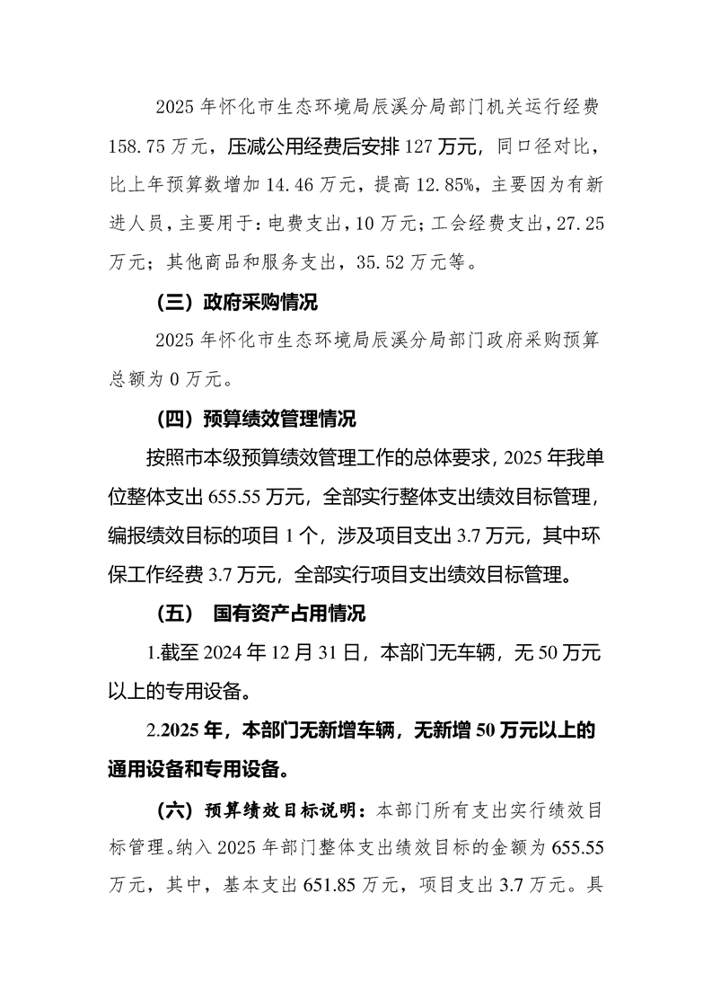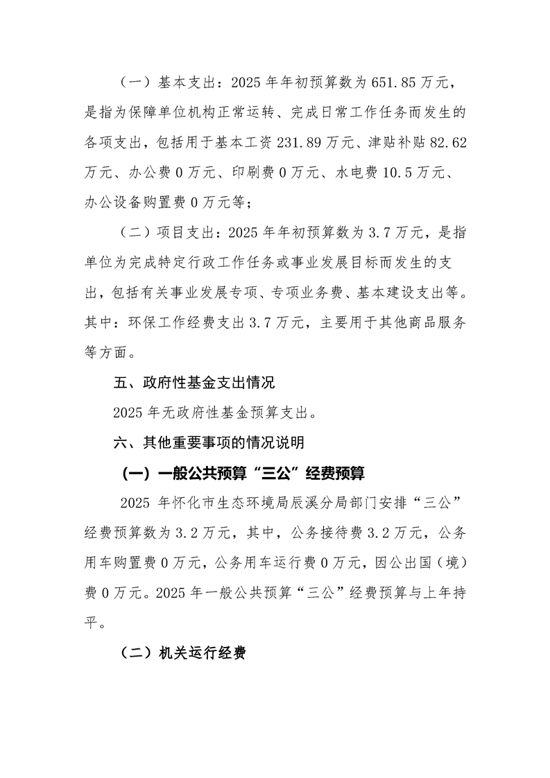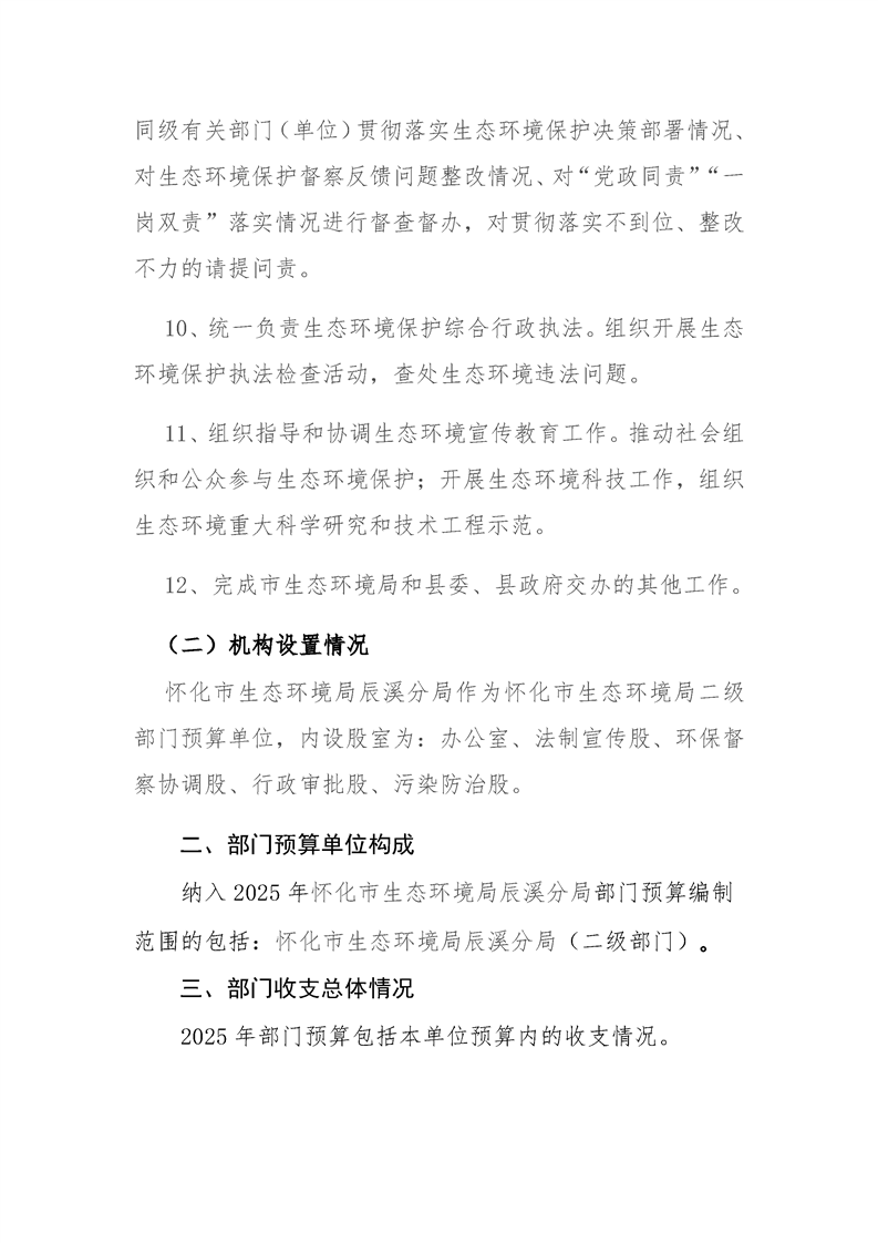 2025年度怀化市生态环境局辰溪分局部门预算公开说明