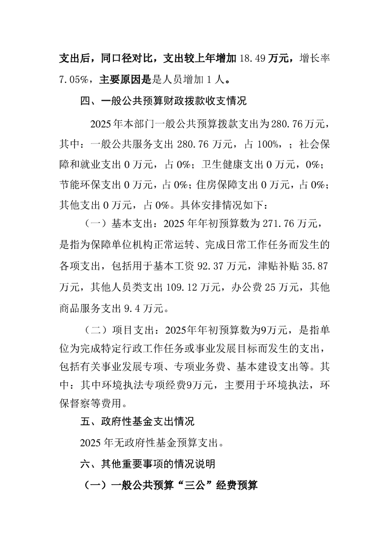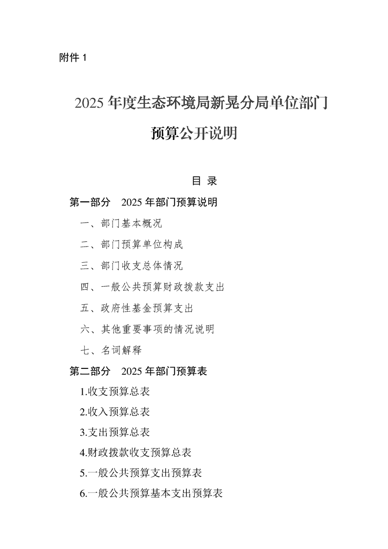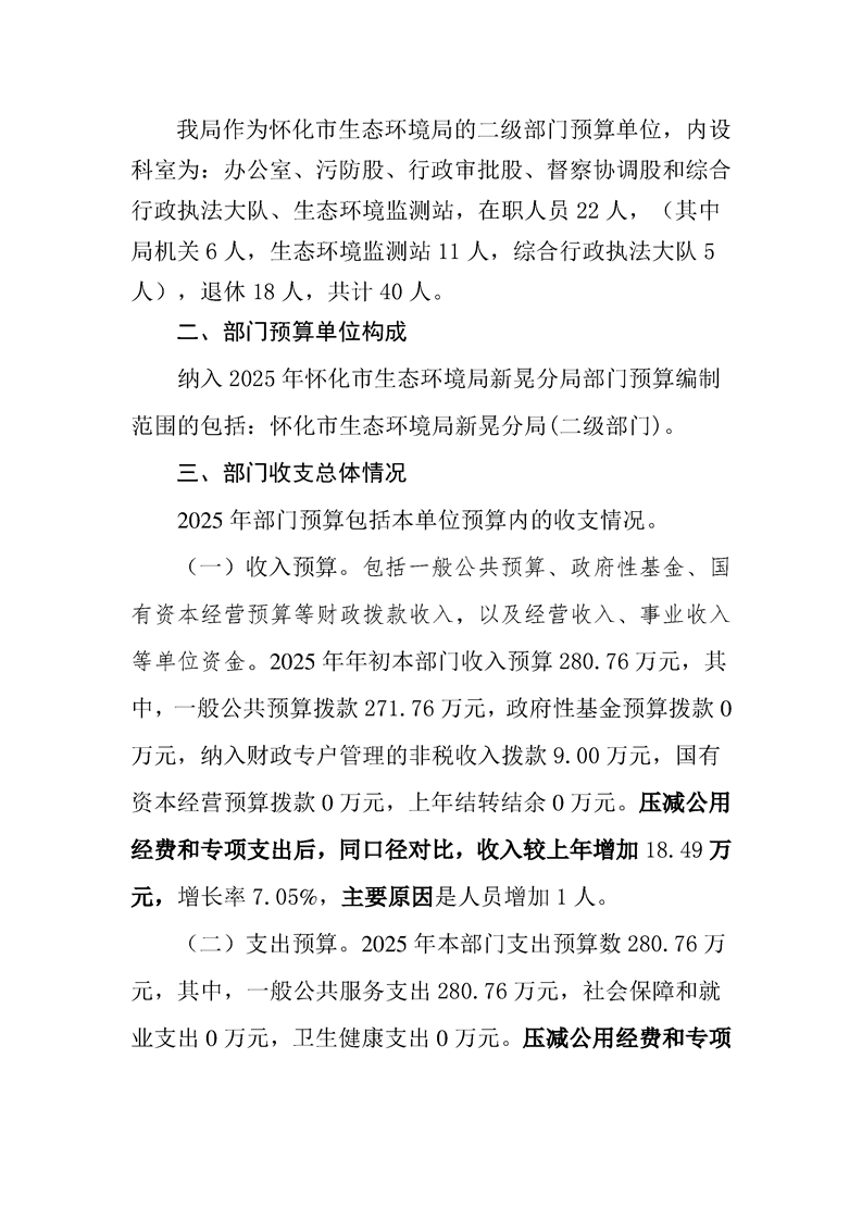 2025 年度生态环境局新晃分局单位部门预算公开说明
