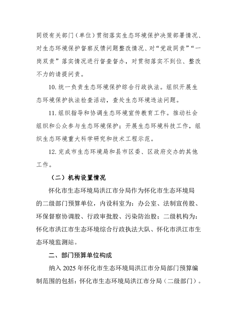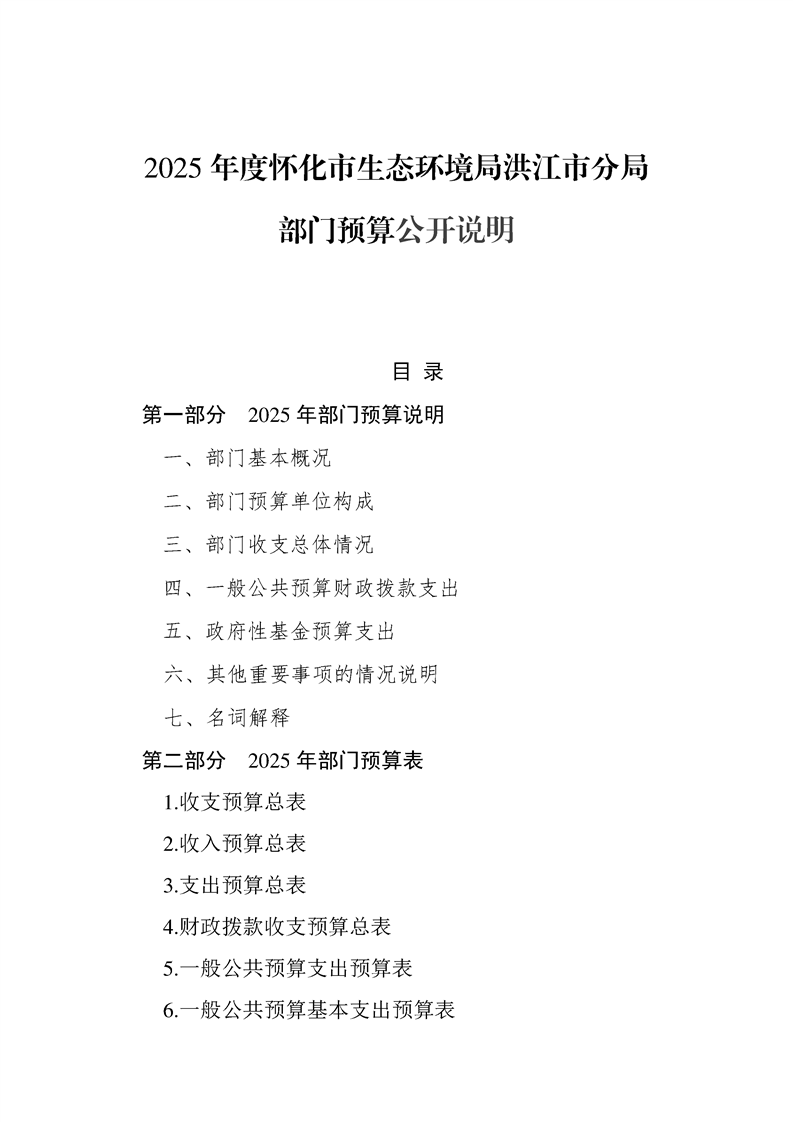 2025年度怀化市生态环境局洪江市分局部门预算公开说明