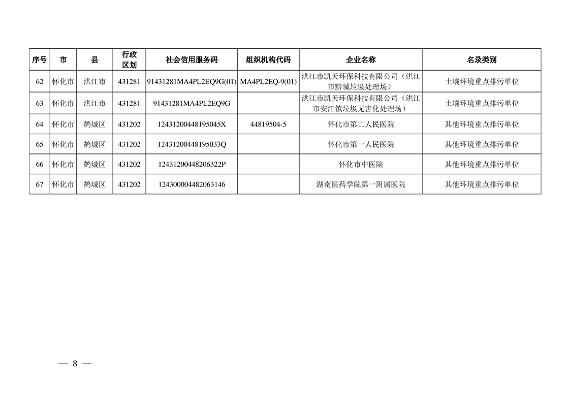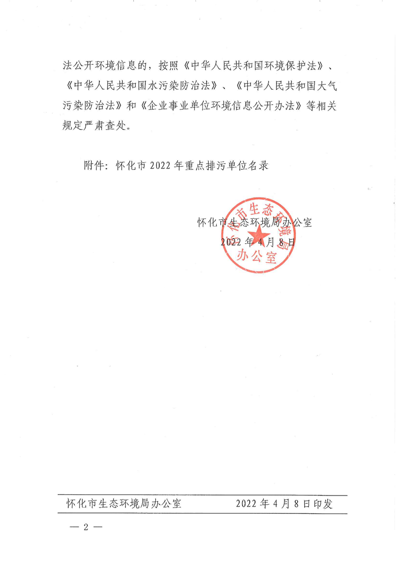 怀化市生态环境局关于印发《怀化市2022年重点排污单位名录》的通知(67家)(怀环办函〔2022〕9号)