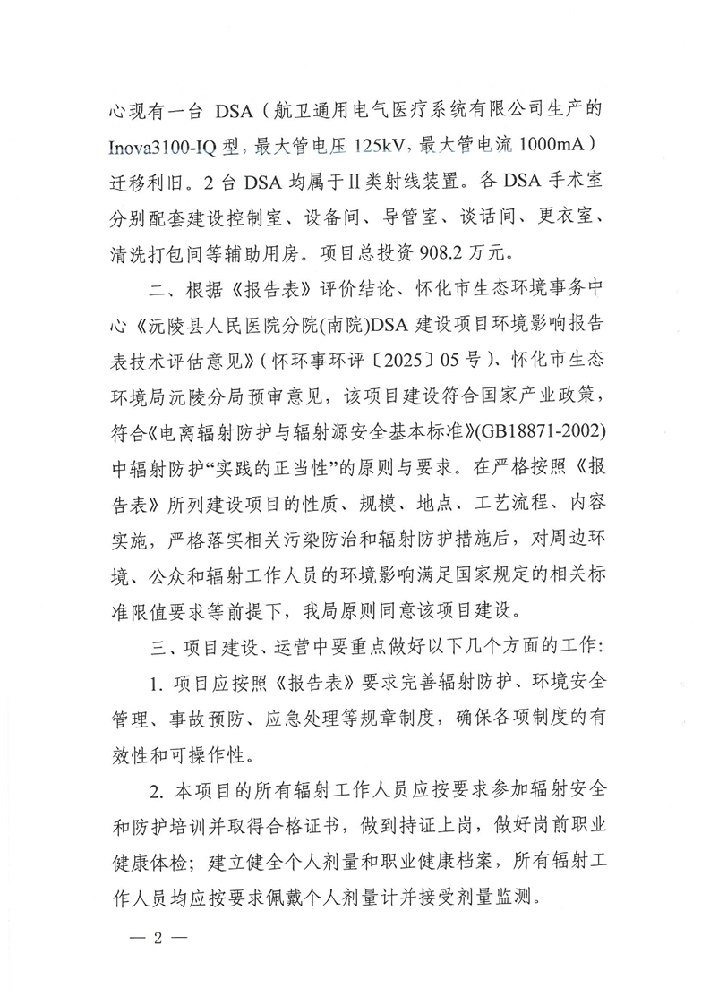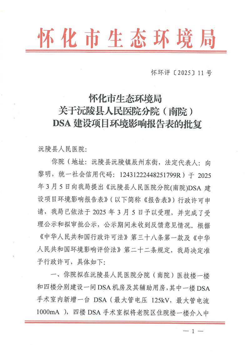 沅陵县人民医院分院(南院) DSA建设项目审批决定公示