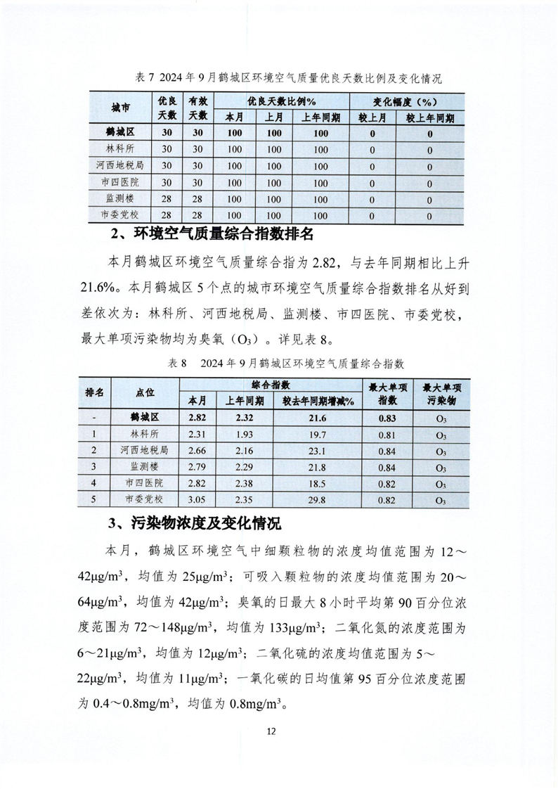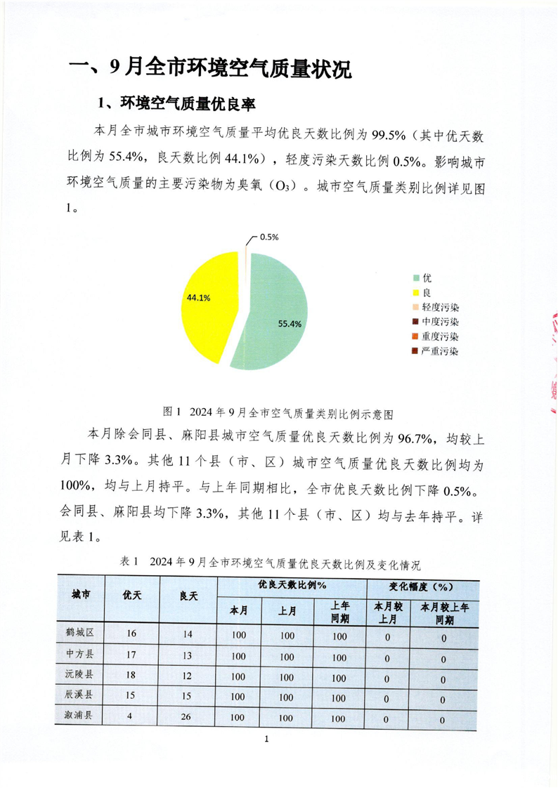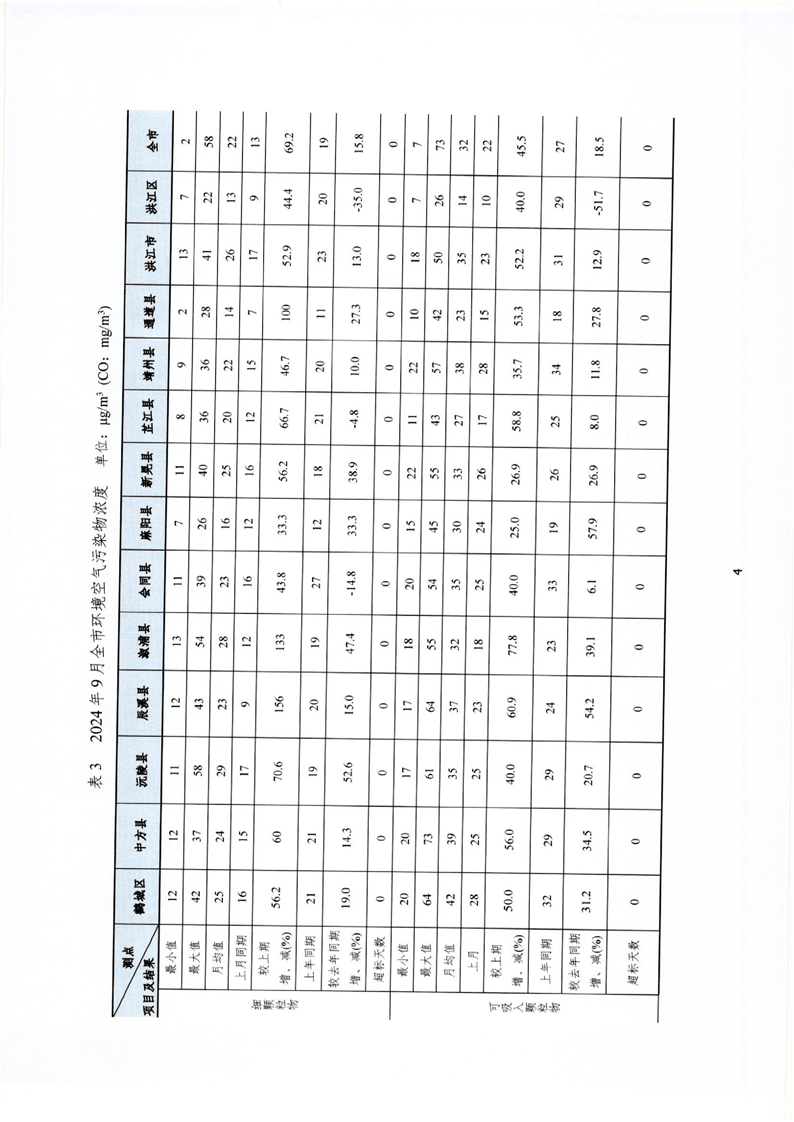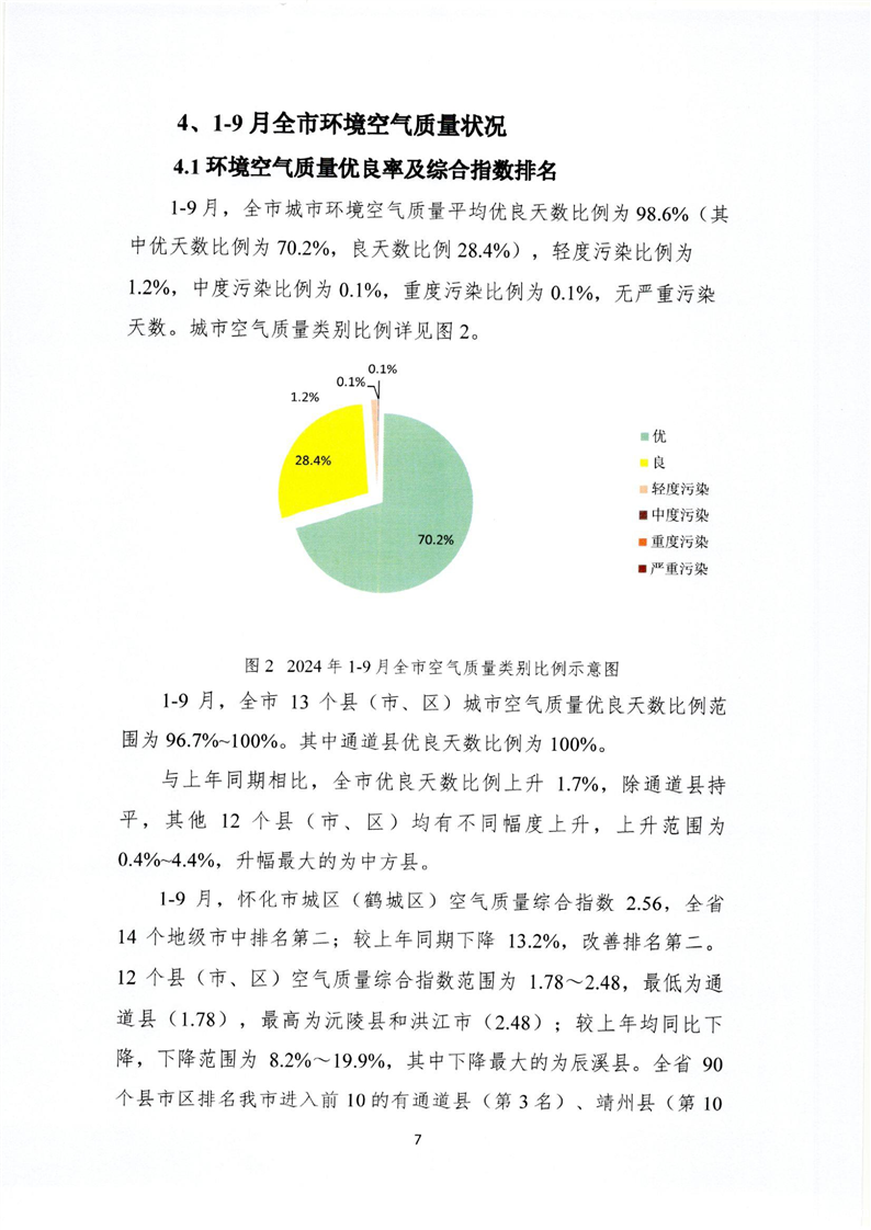 2024年9月怀化市环境空气质量月报