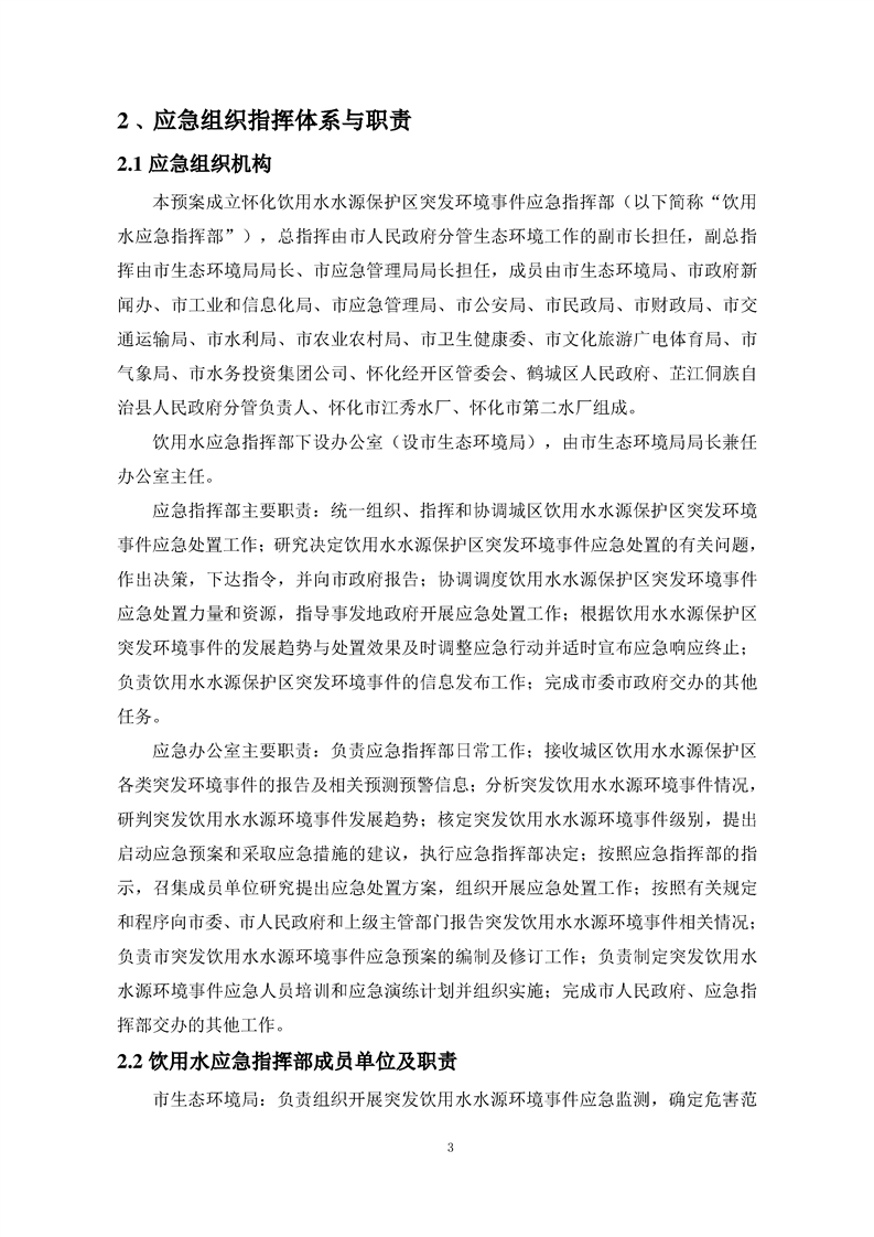 关于印发《怀化城区饮用水水源地突发环境事件应急预案(2023年修编)》的通知