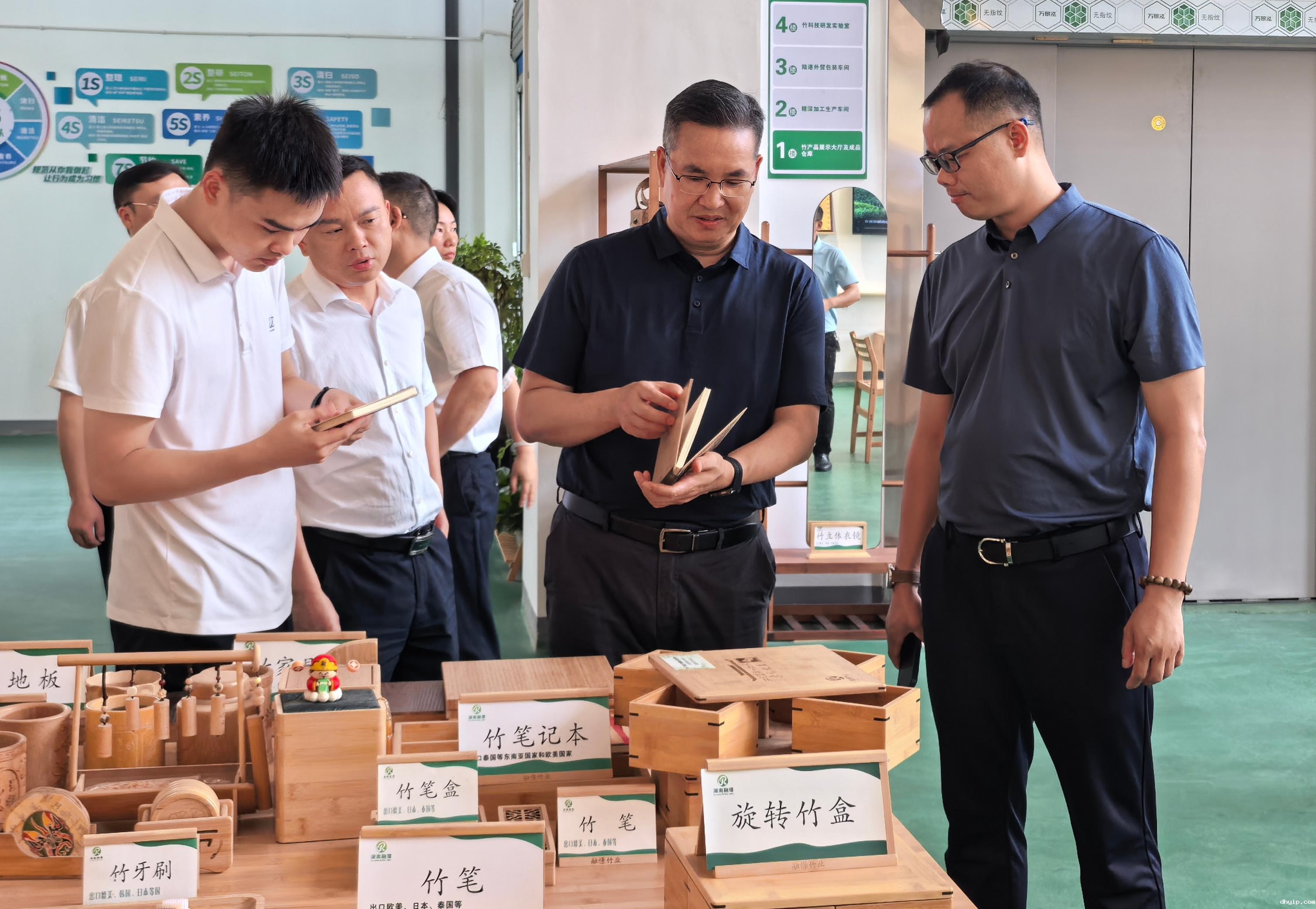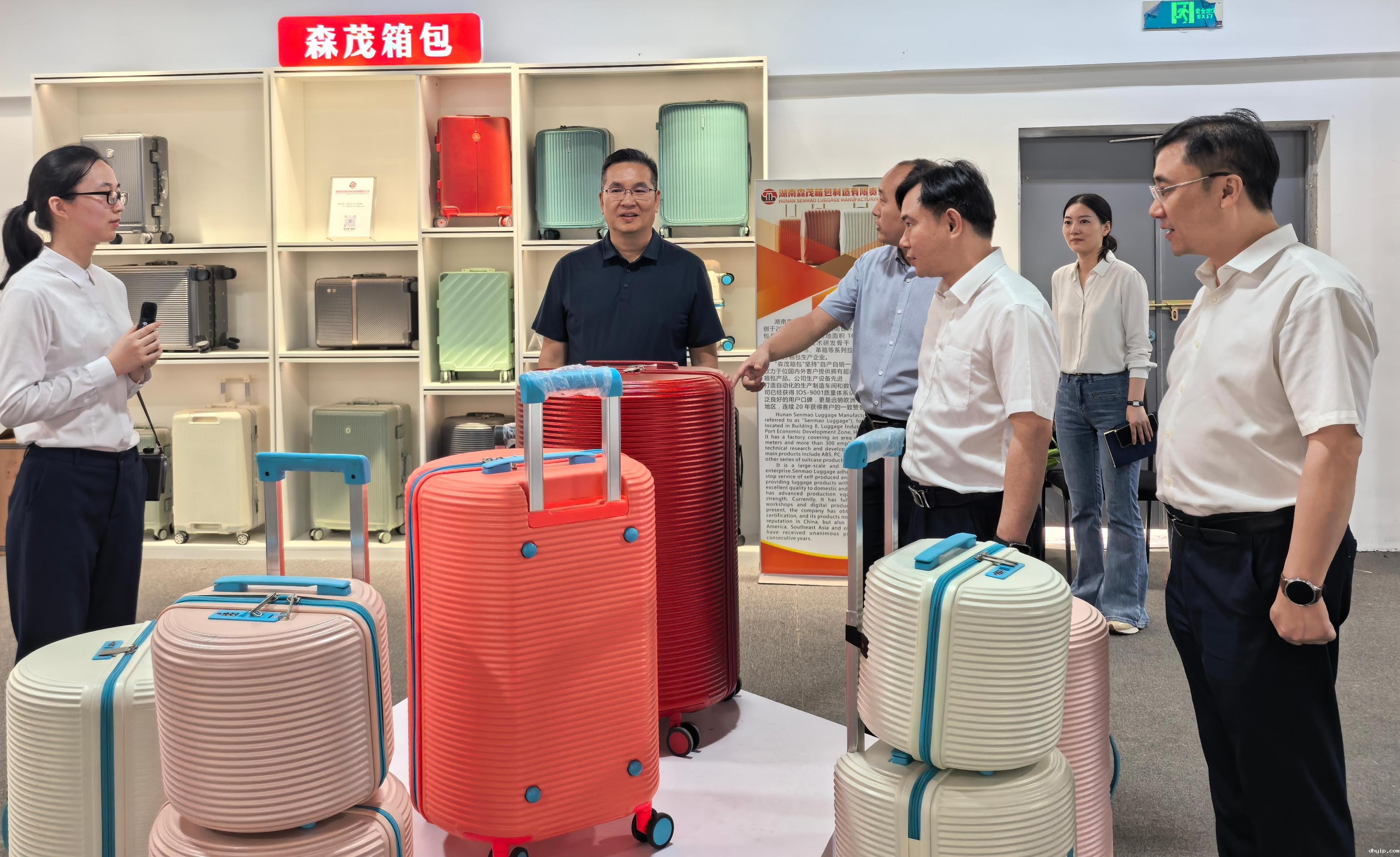 8月20日,邓卫平一行先后深入园区和企业生产一线进行调研。上午,邓卫平一行首先考察了怀化国际陆港经开区,重点调研(跨境)电商产业园的建设发展与运营模式,并前往箱包产业园了解建设进展。随后,调研组赴会同县湖南融憬竹业发展有限公司和湖南享同实业有限公司调研,听取企业关于生产经营、市场开拓及发展规划的汇报。邓卫平勉励企业牢牢把握发展机遇,充分利用好广交会等国际性展会平台,积极开拓海外市场,不断提升产品国际竞争力。