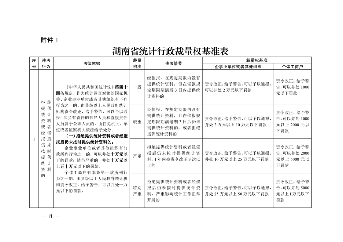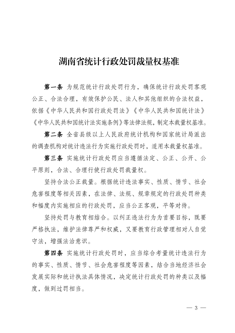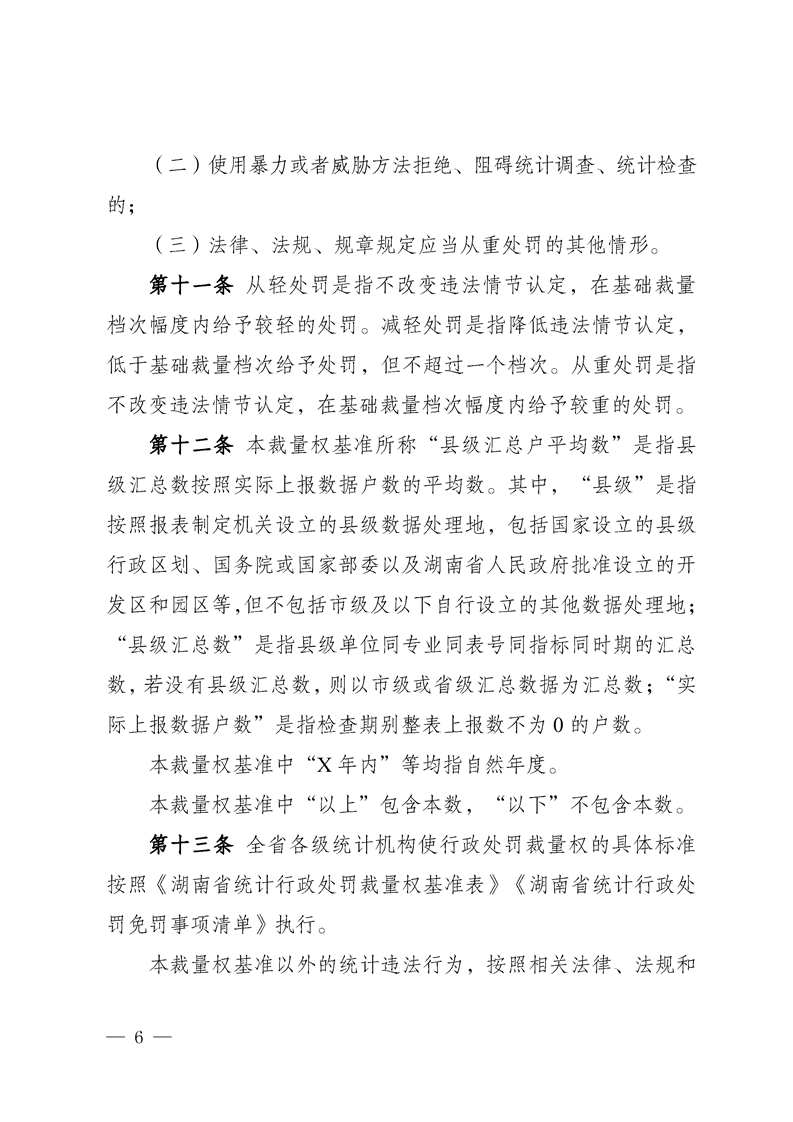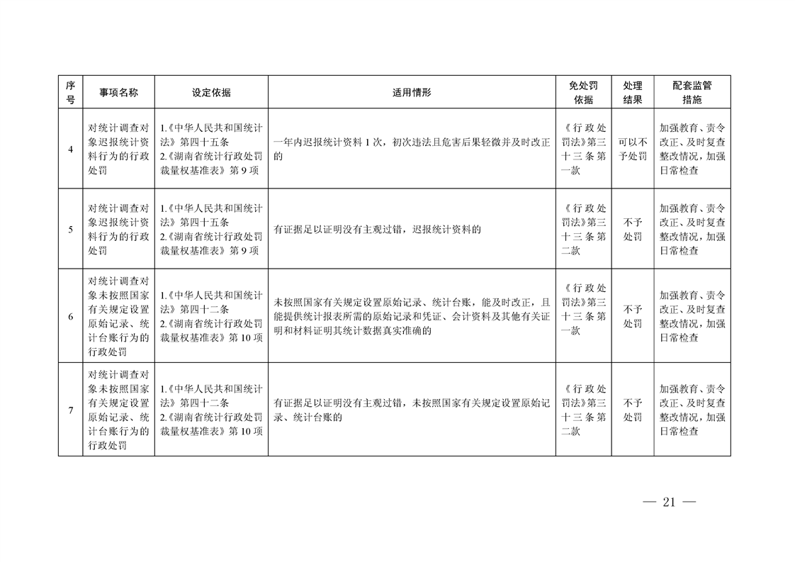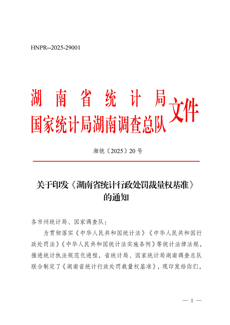 关于印发《湖南省统计行政处罚裁量权基准》的通知