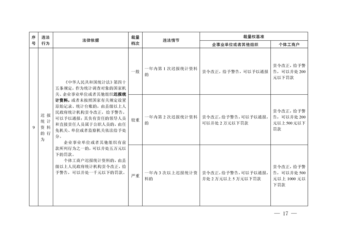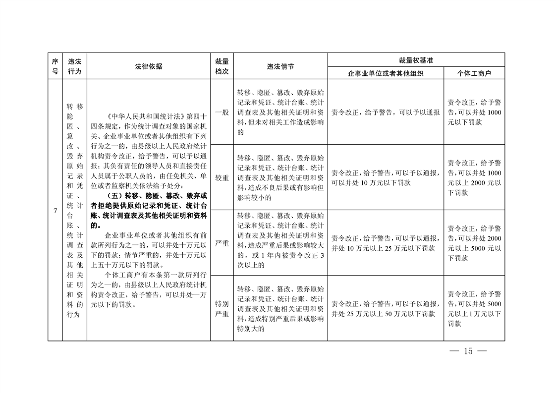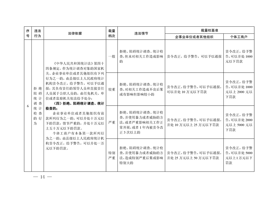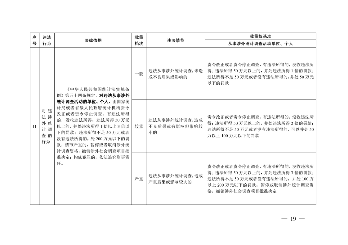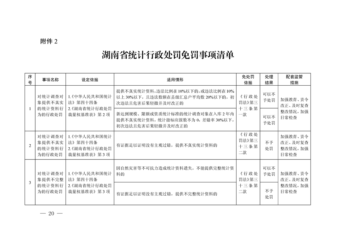 关于印发《湖南省统计行政处罚裁量权基准》的通知