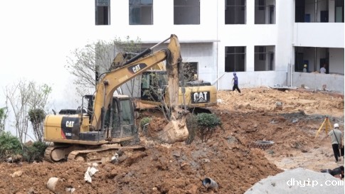 在怀熙小学项目建设现场,施工方正进行绿植铺设工作
