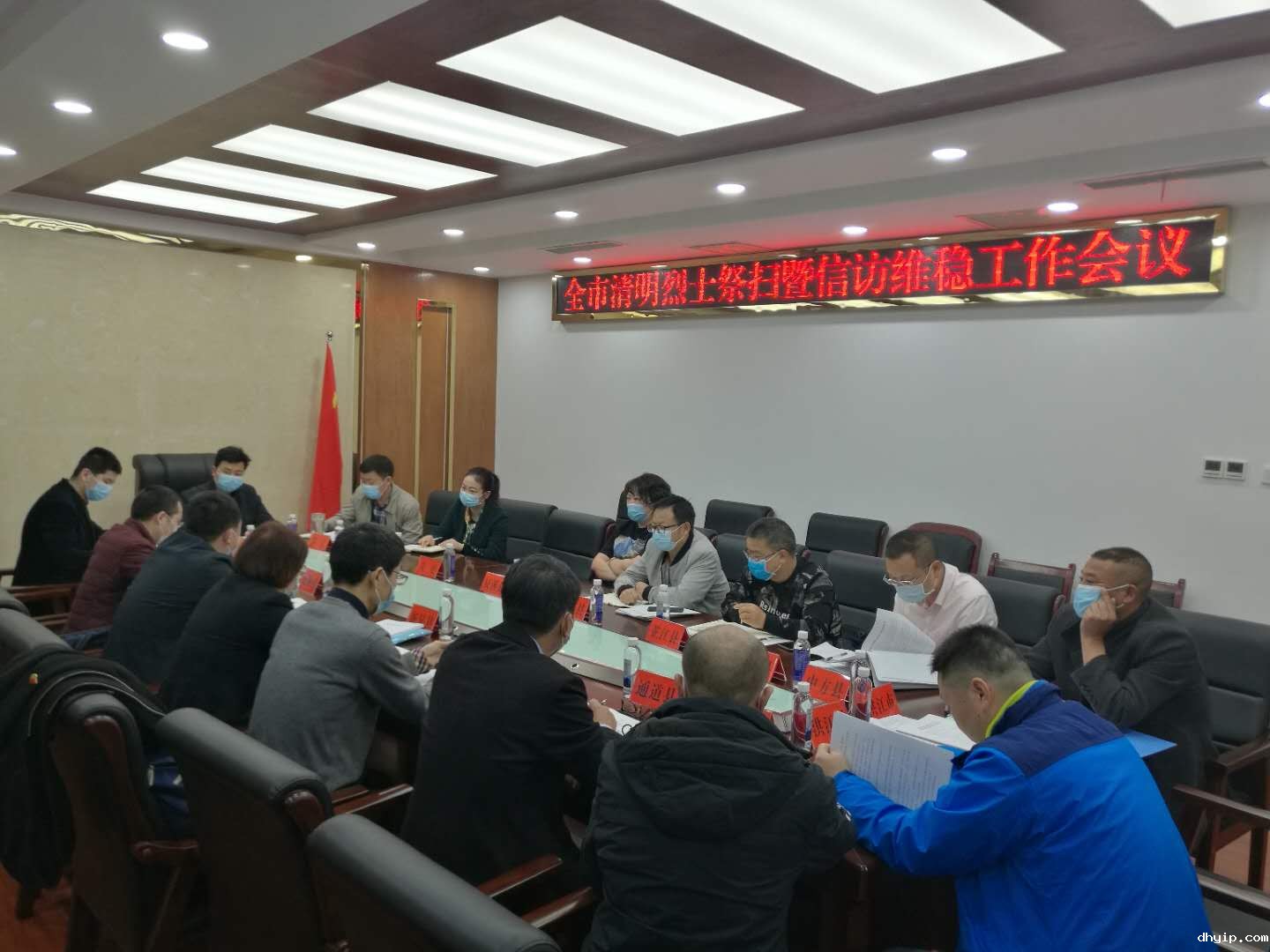 2020年3月27日,市退役军人事务局召开全市清明烈士祭扫暨信访维稳工作会议,部署全市“致敬·2020清明祭英烈”网上祭扫活动。市退役军人事务局党组副书记、副局长黄政安,优抚科、思想政治和权益维护科、市退役军人服务中心、市烈士陵园管理所负责人和各县市区退役军人事务局分管副局长参加会议。