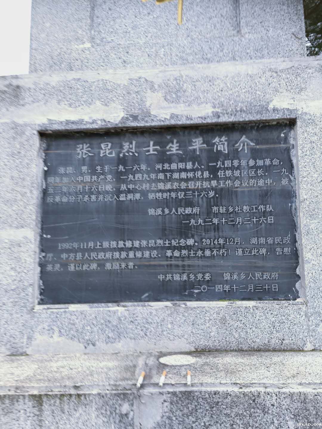 张坤烈士陵园。位于铁坡镇锦溪村一组卧烧坳山上。建于1992年11月,占地150平方米,现共安葬革命烈士1名,主要建筑物有烈士纪念碑。2014年12月由湖南省民政厅、县人民政府拨付20万元对烈士纪念设施进行重新修建。目前还有需要全面维修完善的:一是安装烈士纪念碑台阶两边的防护栏;二是烈士纪念碑周围的绿化的修建和道路的维护;三是安装烈士纪念平台四周的防护栏;四是对纪念设施进行防腐处理。共计需投入资金8万元,计划于2019年12月底以前完成。