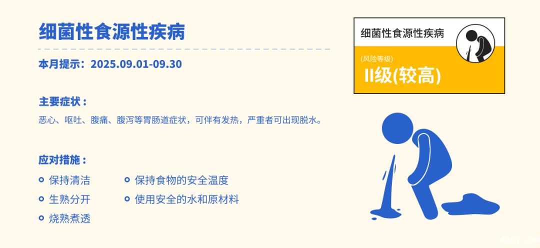 重点关注:登革热、基孔肯雅热、野生蘑菇中毒、犬伤、细菌性食源性疾病、诺如病毒感染、有毒动植物性食源性疾病、新冠病毒感染。