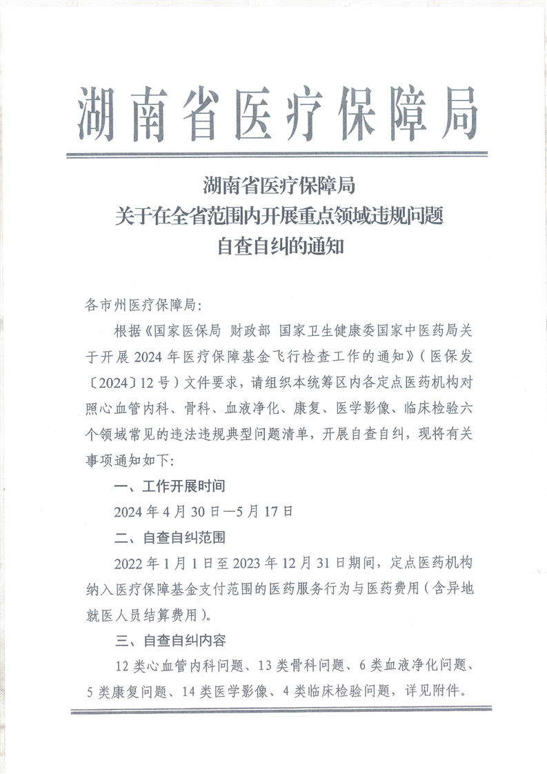 怀化市医疗保障局转发《关于在全省范围内开展重点领域违规问题自查自纠的通知》的通知