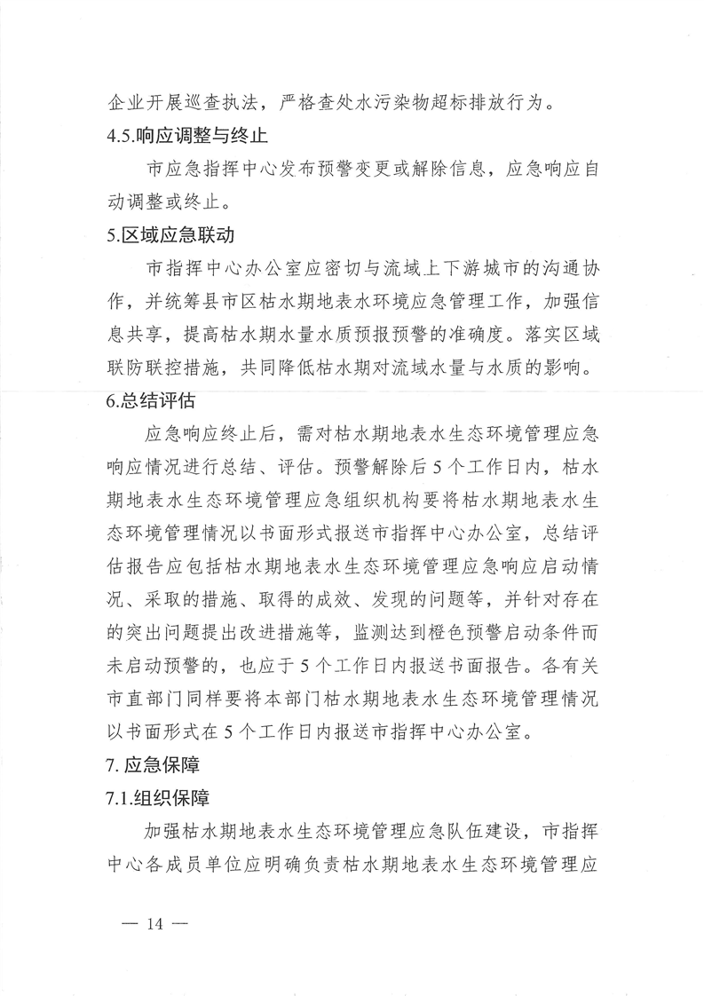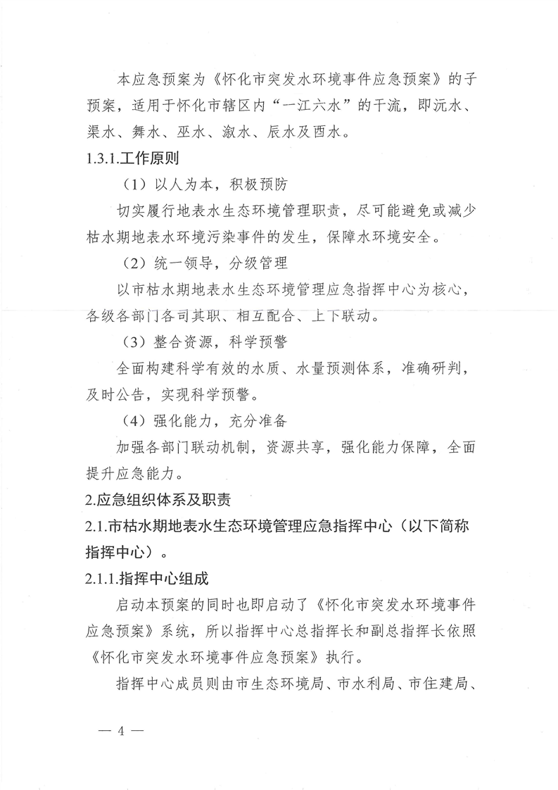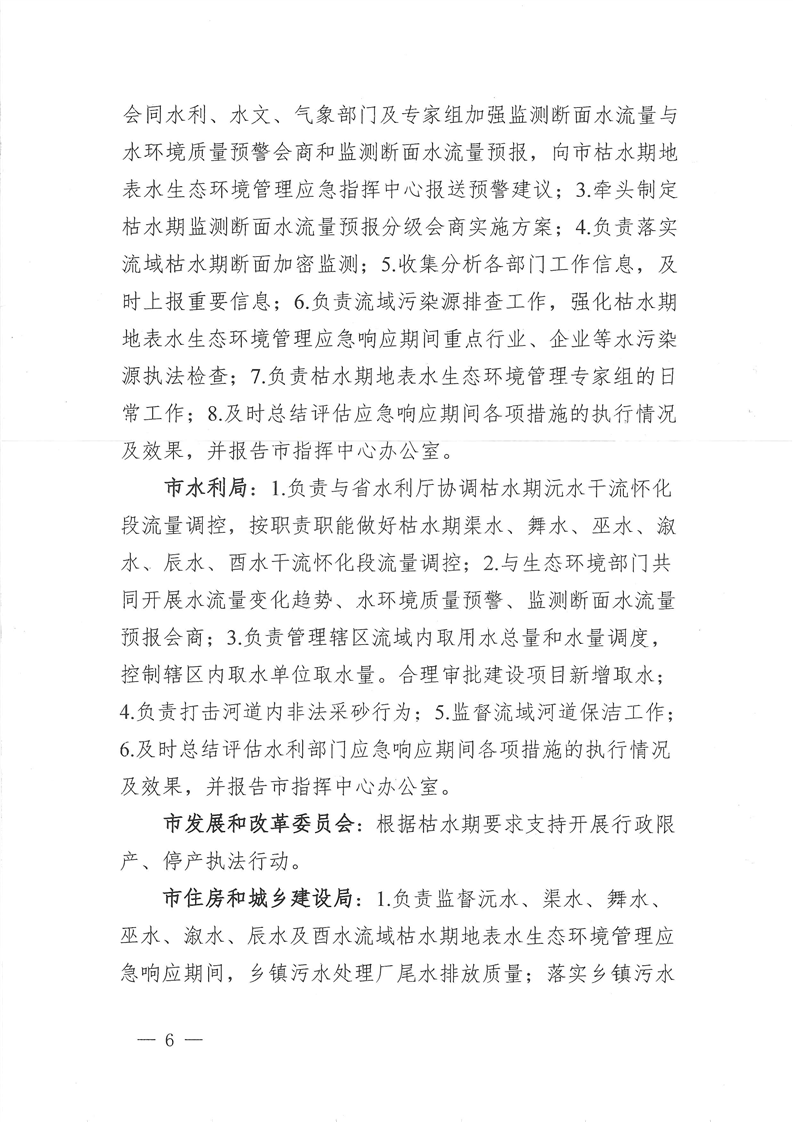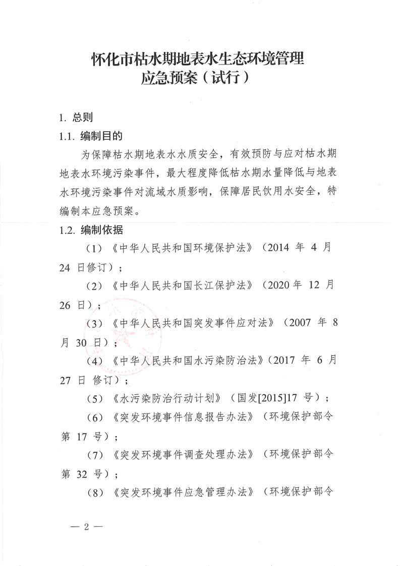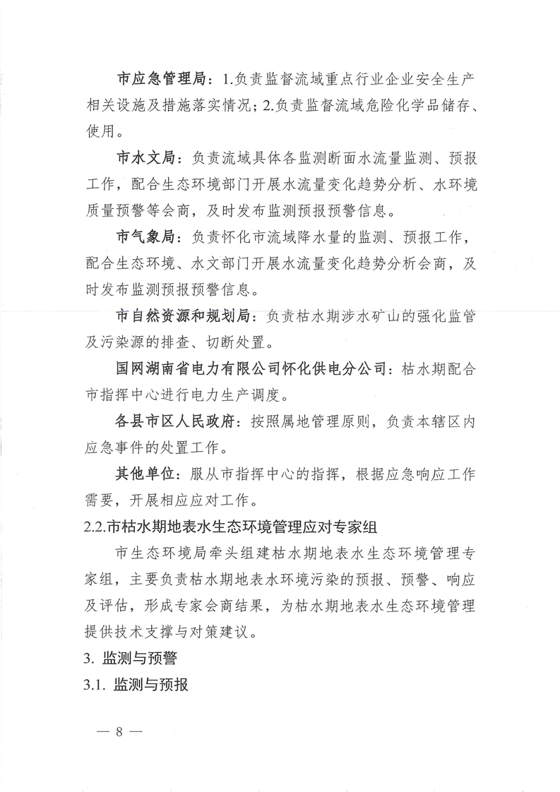 关于印发《怀化市枯水期地表水生态环境管理应急预案(试行)》的通知
